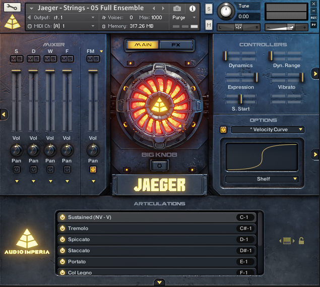 I had yet to be disappointed by anything released by Audio Imperia, and the more I learned about Jaeger, the more eager I became to hear more demos and check it out for myself. The artwork and marketing alone sure go a long way to selling the product. They made it clear, this is not your mother’s orchestral library... this is modern, epic, and in your face. You won’t find any vague and pretentious marketing campaigns here! You know… the kind with musicians playing in slow mo, quiet string swells and minimalist ambiance (aka… Spitfire Audio). Instead, we get massive braams, blaring horns, tight string ostinatos, and the most gorgeous legato vocals you’ve ever heard. To top it all off, the visuals seem straight out of a sci fi blockbuster... you’re faced with this badass artwork of a giant mechanized robot (like the Jaegers in Pacific Rim), a big knob in the center of the GUI that looks sort of like the arc reactor on Iron Mans chest, and just an all around sleek, futuristic, mechanical design. Pretty freakin cool, if you ask me.